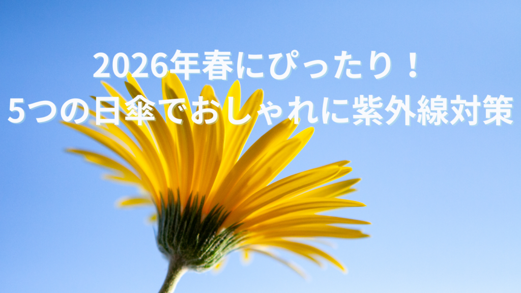 この記事では、春の外出で効果的に紫外線対策ができる5本を紹介しました。あなたが重視するのが遮光力ならWpc.のドーム型、フェミニンな見た目ならOgawaのフリル、コストパフォーマンスを重視するならhiino kanoのフラワー、大きな日陰を作りたいならオカモトの大判ドーム、デザインで選ぶならKIZAWAの花びら型が候補になります。どの傘も晴雨兼用や軽さ、持ちやすさなど特徴が異なるため、用途とライフスタイルに合わせて選ぶことで毎日の紫外線対策がぐっと楽になります。